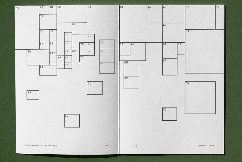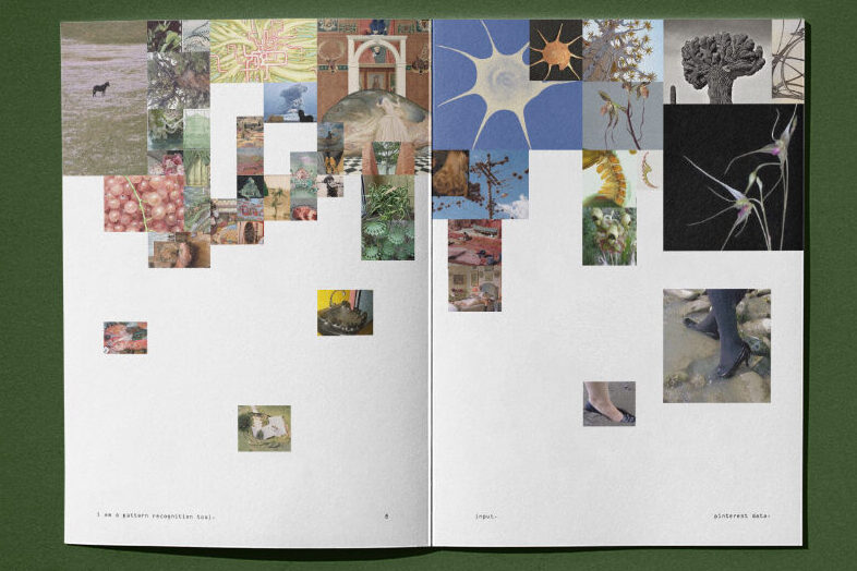 “I am a pattern recognition tool” explores the dataset I would use to program an AI to achieve my visual style. This dataset includes Pinterest data, bedroom art data, and Instagram data. These three datasets offer a comprehensive visual reference to the images I consume and enjoy. My hypothesis is that these datasets will provide insight into my visual style. By analysing the prompts, the audience will see the influence and bias present in the data and reveal my worldview.